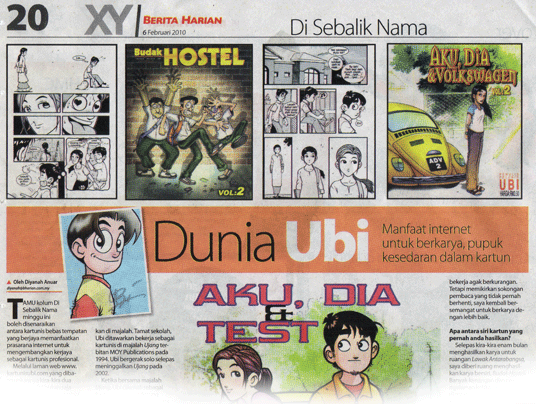 Sejak beberapa tahun lalu, Ubi menampilkan siri Aku, Dia & Test yang berkisar kisah cinta remaja pada laman webnya. Harapan Ubi, melihat siri karyanya itu diadaptasikan ke medium animasi suatu hari nanti.